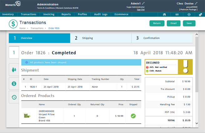 NOTE: The return will be the latest entry at the bottom, labelled Refund.