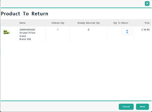 Click inside the Qty to Return field and enter the quantity of items being returned.